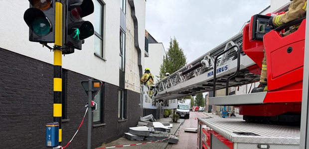De eerste stormschade van storm Benjamin is een feit. In de Karel De Backerstraat in Hemiksem is donderdagvoormiddag een deel van een gevel losgekomen door de felle rukwinden.