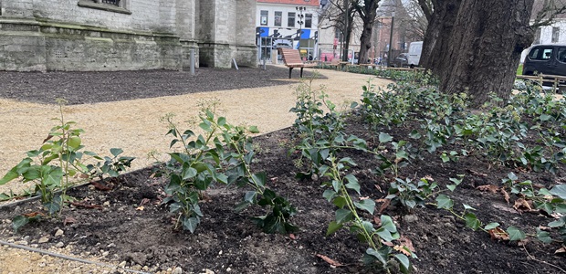 Bij de heraanleg werd gekozen voor planten die geschikt zijn voor de schaduwrijke omgeving van de kathedraal. De mix van bloemen, kruiden en heesters zorgt voor variatie doorheen de seizoenen.